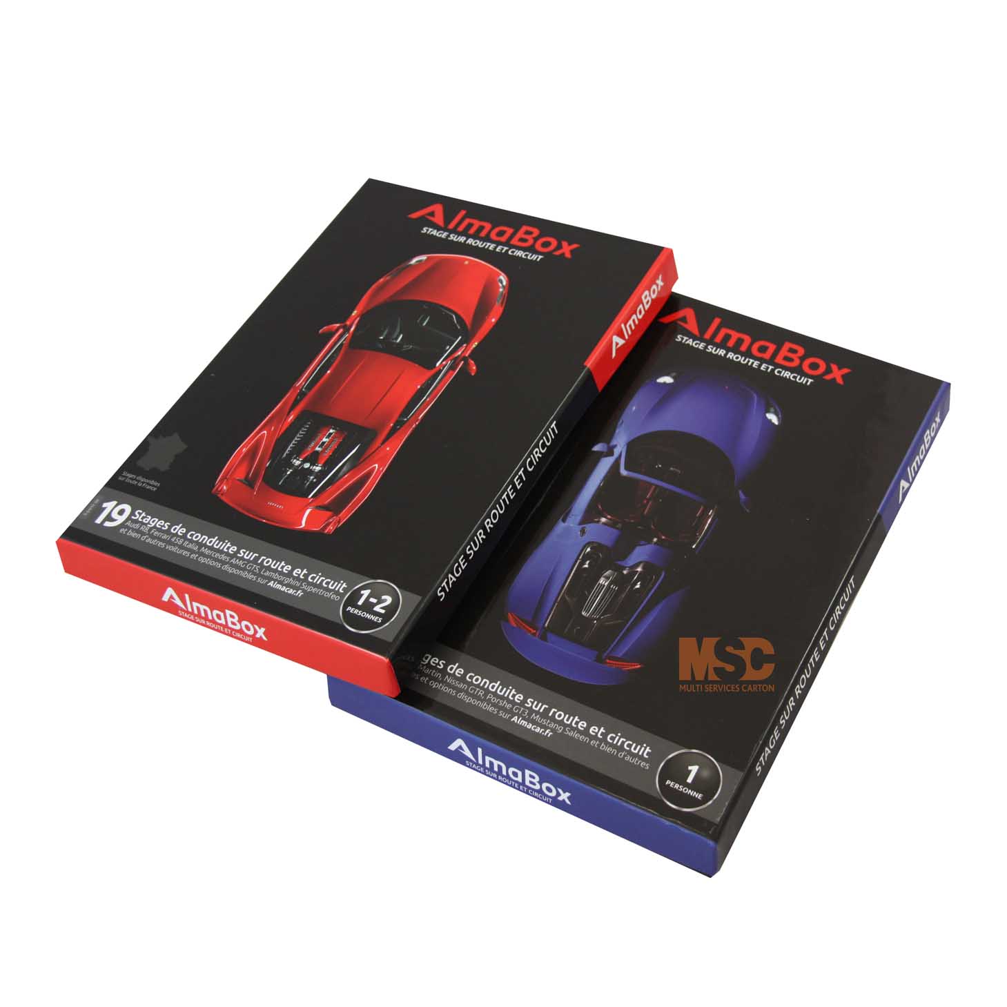 Le coffret carton type box est réalisé en carton compact avec un pelliculage brillant.
