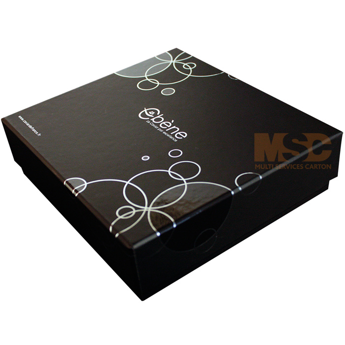 Le vernis est utilisé pour les boîtes et coffrets de luxe, les étuis packaging ainsi que les PLV.