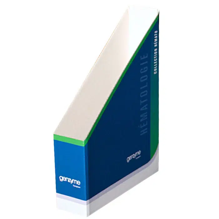 Le porte leaflet est un support en carton permettant de présenter des brochures, dépliants, flyers, tracts, brochures, cartes, livres ou même produits (système spécifique) à la disposition des clients. Il est muni d’un fronton permettant un impact visuel fort de la marque.