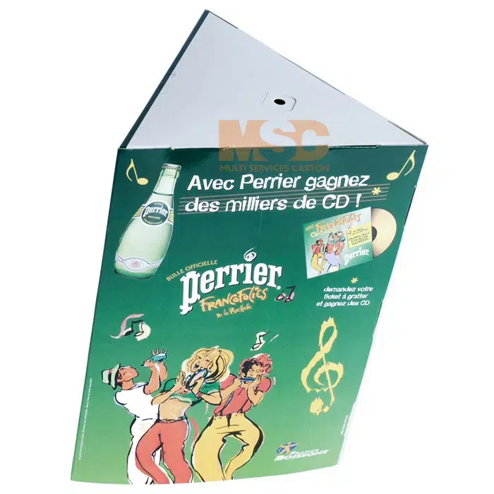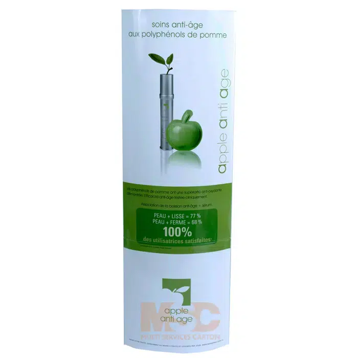 Le totem en carton, livré à plat, est un outil de communication et de distribution très visible, utilisé notamment dans les magasins, salons et lieux de passage.